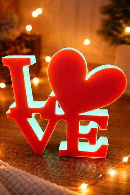 Stylowa świecąca w ciemnosci dekoracja napisu druku 3D "LOVE" + świeczka zapachowa. Doskonały dodatek do wnętrza oraz ...