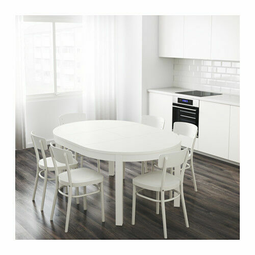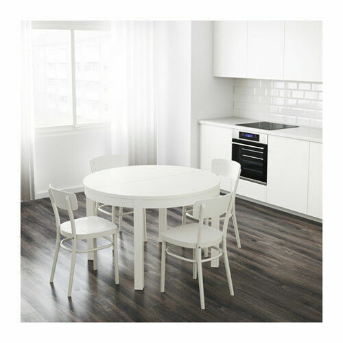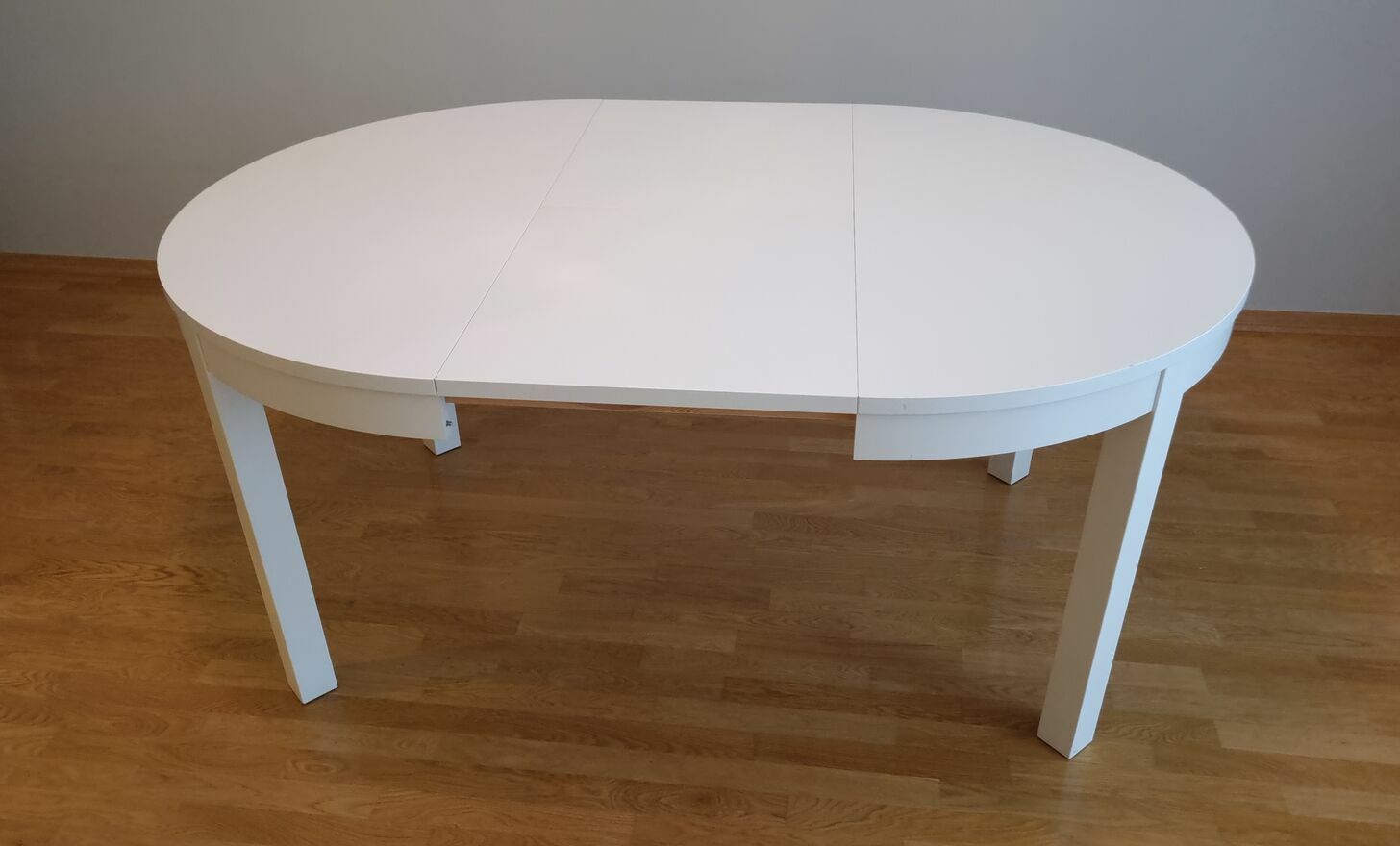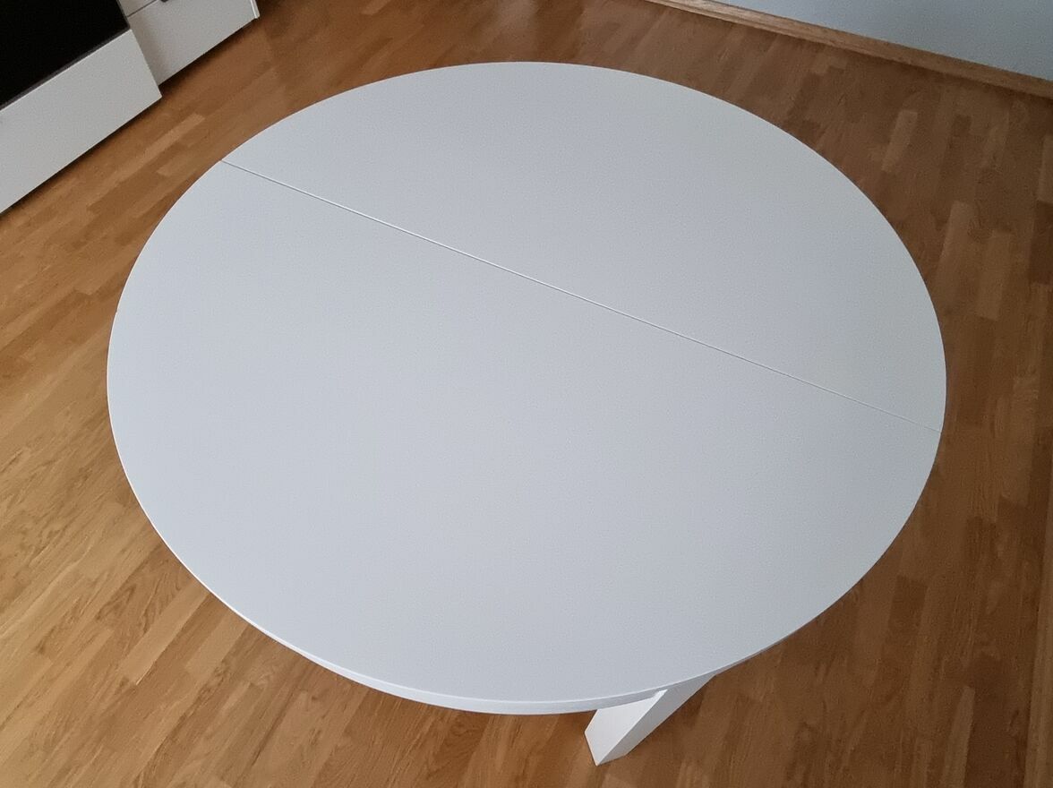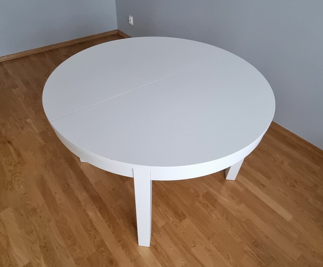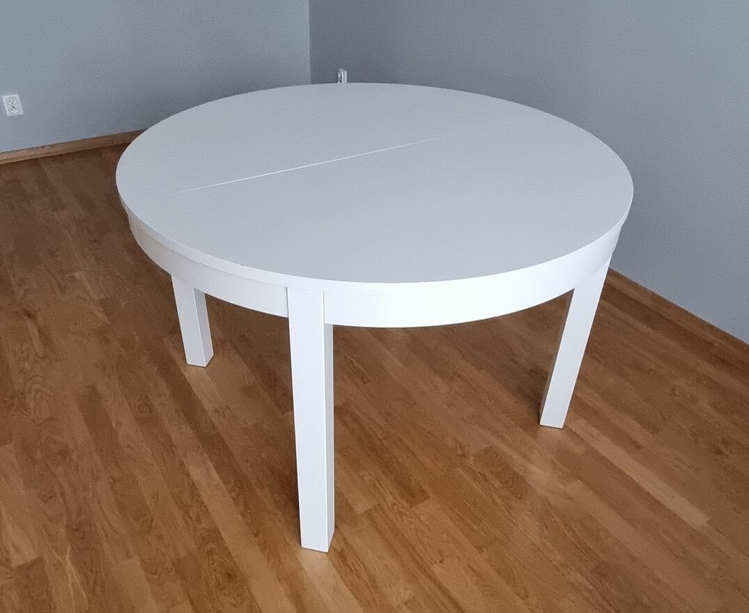 Biały okrągły stół IKEA BJURSTA 115cm rozkładany do 166cm