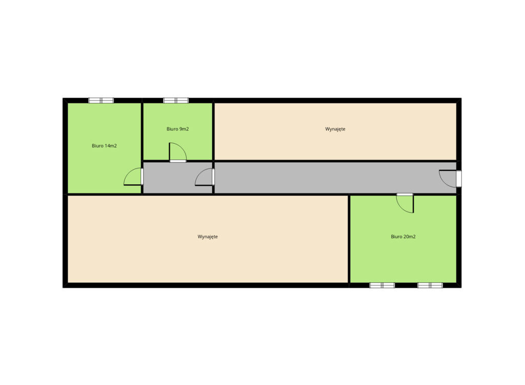 * duże biuro – ok. 20 m², czynsz 850 zł netto/mies.