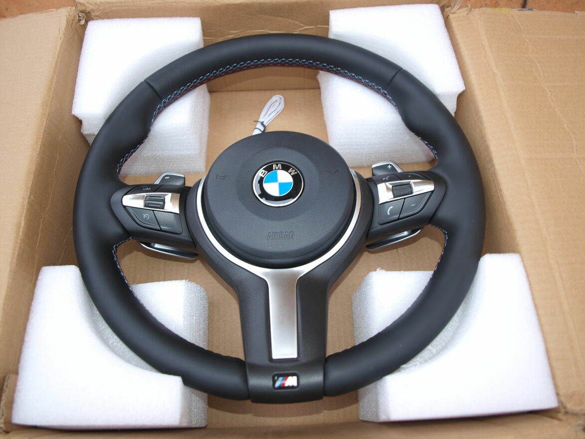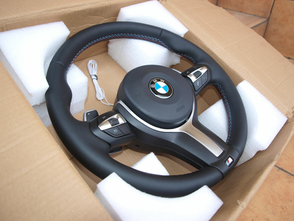 Kierownica skórzana + airbag kierowcy do BMW X1 F48 Sport, X2 Sport, X4 F26 M pakiet, X5 F15 M pakiet. Kierownica jest oryginalna BMW z łopatkami zmiany biegów i trzykolorową nicią. Jest nowa. Stan idealny.cena 2420 zł.