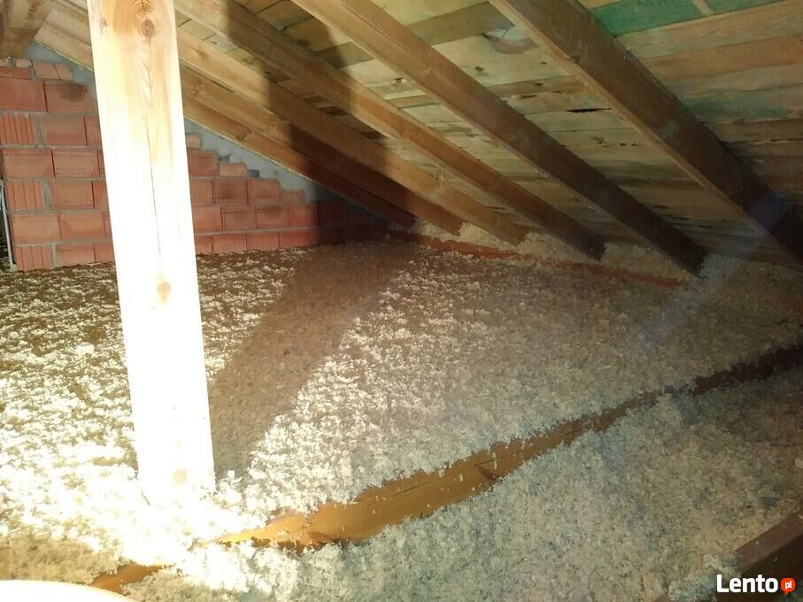 Wykonujemy docieplenia stropodachów, ścian i poddaszy metodą wdmuchiwania Wełny granulowanej, Styropianu oraz Celulozy.Równo nasypany granulat na strop, rigips, folię czy w szczelinę ściany lub podłogi, tworzy spójną warstwę bezmostkowego materiału termoizolacyjnego. Jest to trwałe, skuteczne, a przede wszystkim ekonomiczne rozwiązanie. Częstokroć okazuje się, że koszt robocizny z materiałem jest tańszy niż porównywalnej klasy sam materiał w hurtowni budowlanej znanych nam marketów.