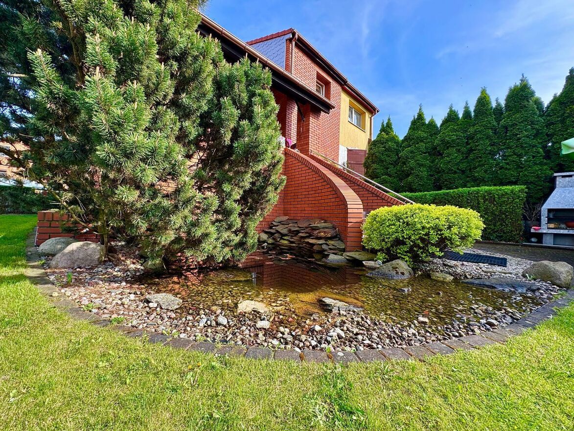 - taras z wyjściem na zadbany ogród z oczkiem wodnym