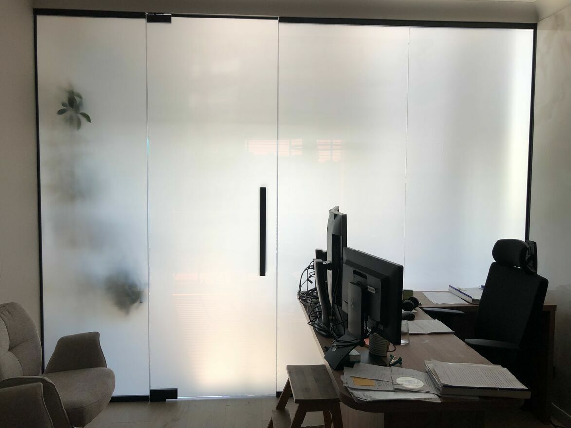 Drzwi szklane, zabudowy szklane - folia na pilota