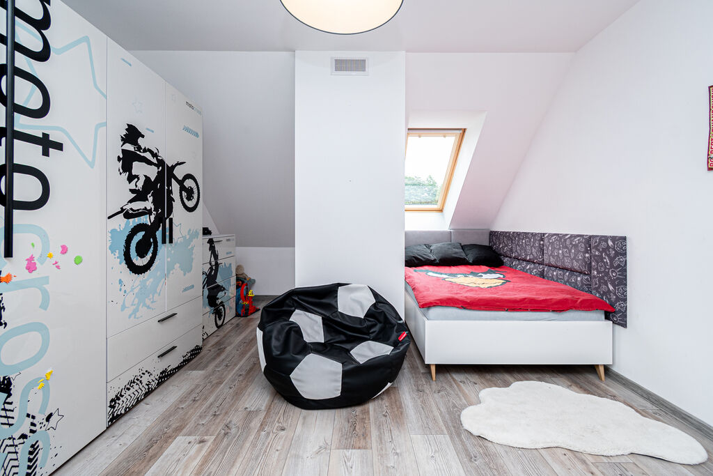 piętrze znajdziemy również dodatkowy, duży pokój, który można