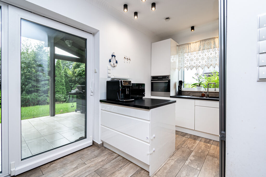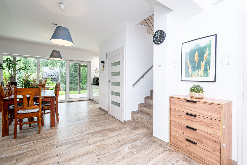 ogród oraz otaczający nieruchomość las. Z korytarza dostaniemy