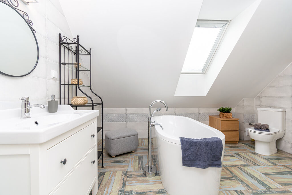 sypialnią, przestronną łazienką z wanną wolnostojącą i