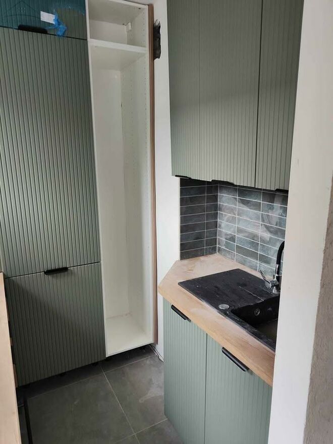 Kuchnia posiada zabudowę meblową. Ekspozycja okien dwustronna. Czynsz około 400 zł. Do mieszkania przynależy piwnica.