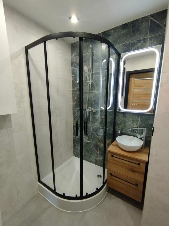 Mieszkanie przeszło kompleksowy remont obejmujący wymianę instalacji. Zostało zaaranżowane w nowoczesnym stylu z użyciem wysokiej jakości materiałów.