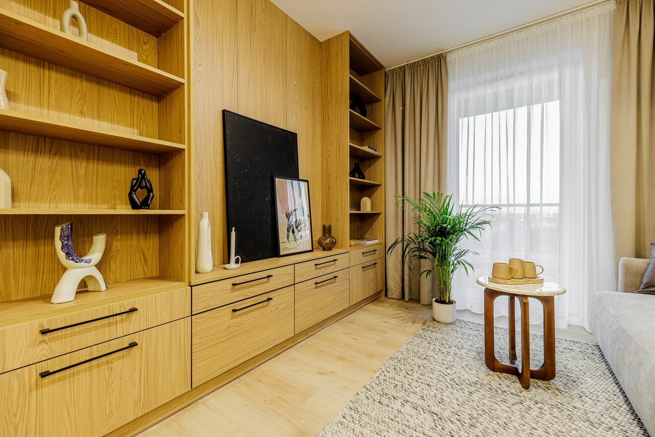 Zabudowy meblowe wykonane zostały na wymiar przez stolarza i pozostają w cenie mieszkania, zapewniając trwałość, estetykę oraz maksymalne wykorzystanie przestrzeni. Kuchnia jest w pełni wyposażona w nowe AGD objęte gwarancją (płyta indukcyjna, piekarnik, okap). Przestronna sypialnia oferuje pojemną szafę w zabudowie.