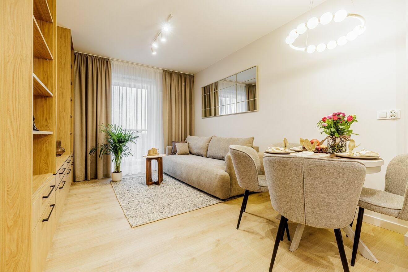 Mieszkanie jest świeżo po generalnym remoncie, zaprojektowane z myślą o wygodzie i funkcjonalności codziennego użytkowania. Wykończone zostało z wykorzystaniem materiałów wysokiej jakości, zgodnie z aktualnymi trendami wnętrzarskimi.