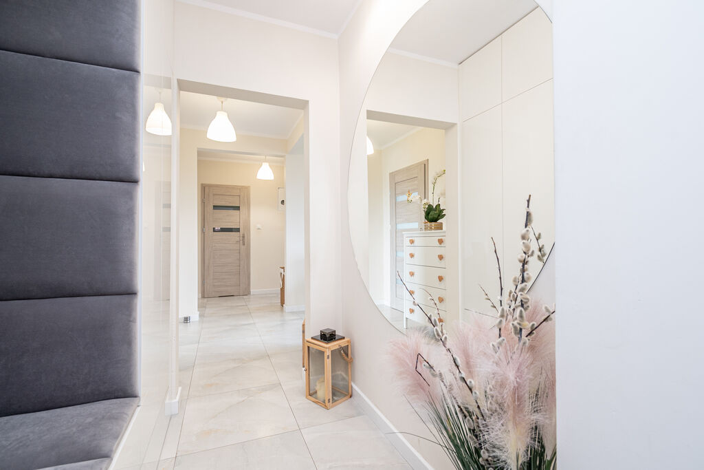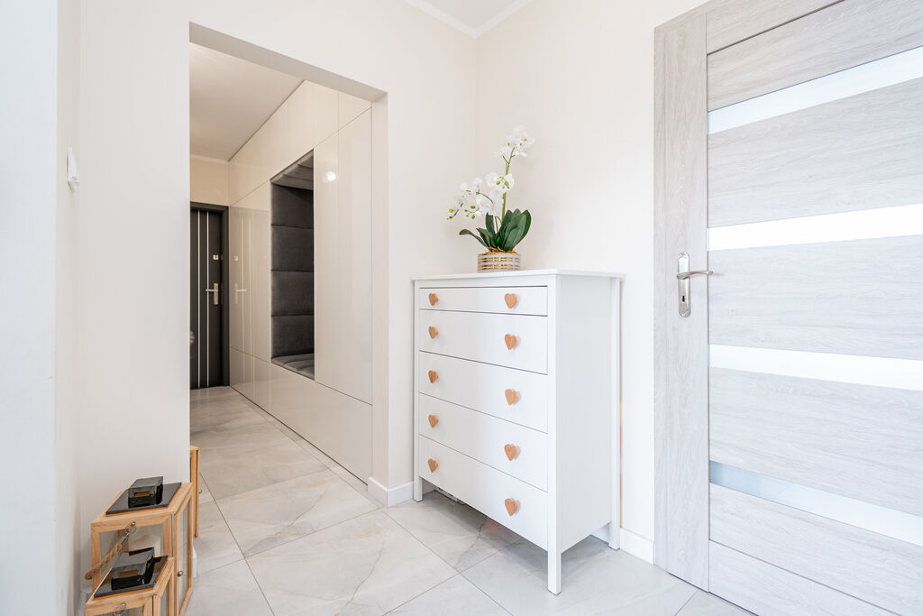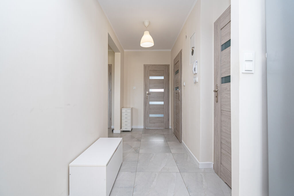 - dużo miejsca do przechowywania (szafa w zabudowie w korytarzu),