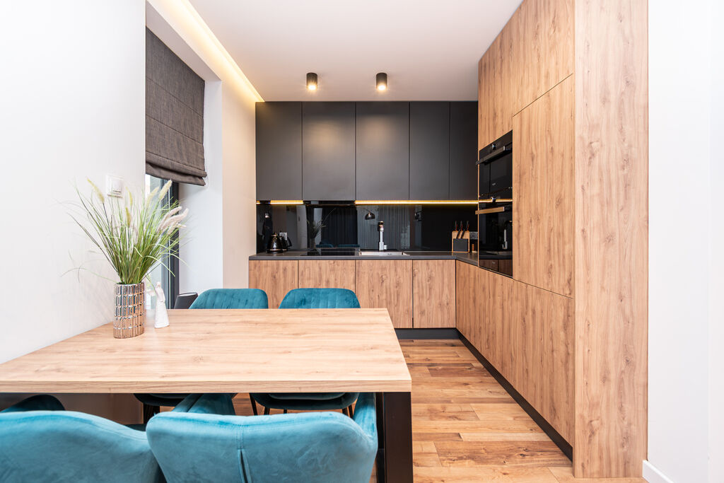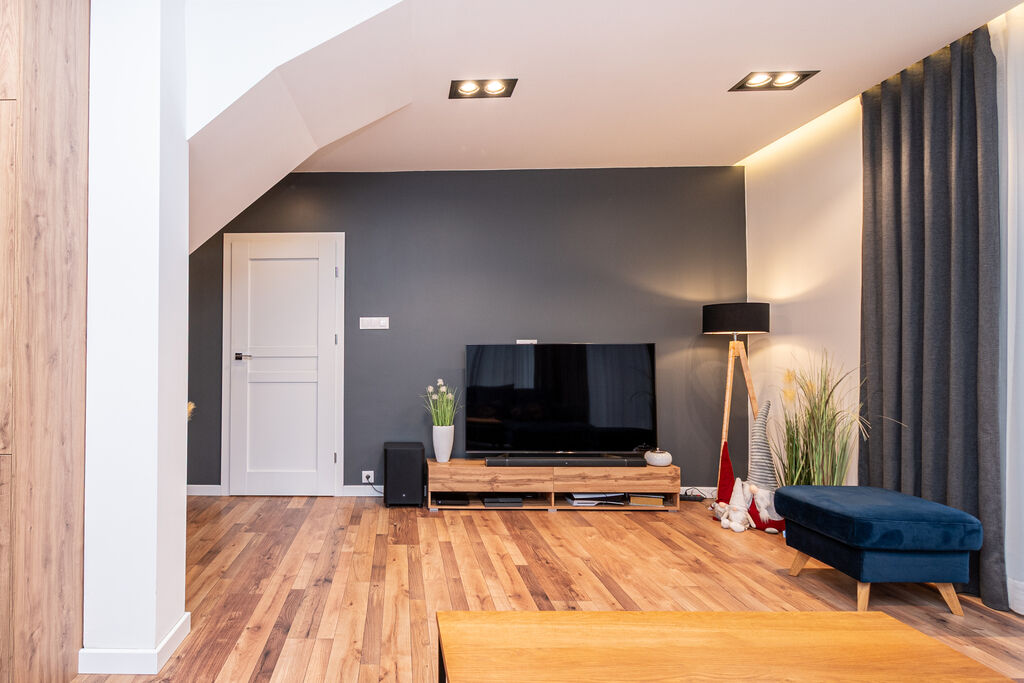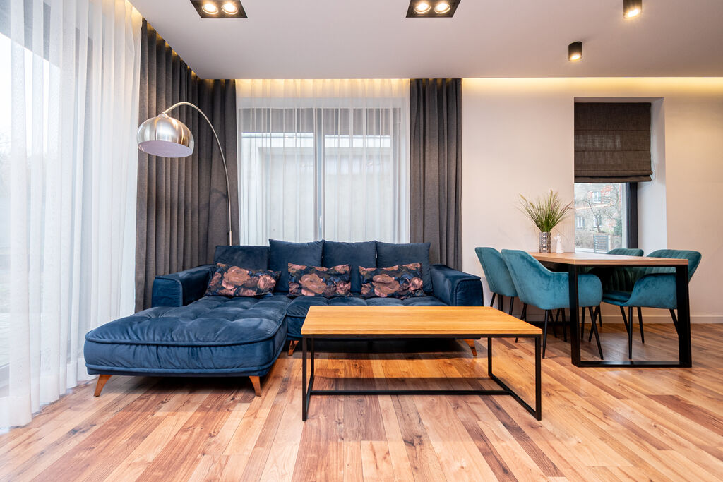 przestronny salon z aneksem kuchennym o powierzchni ok. 29 m² –
