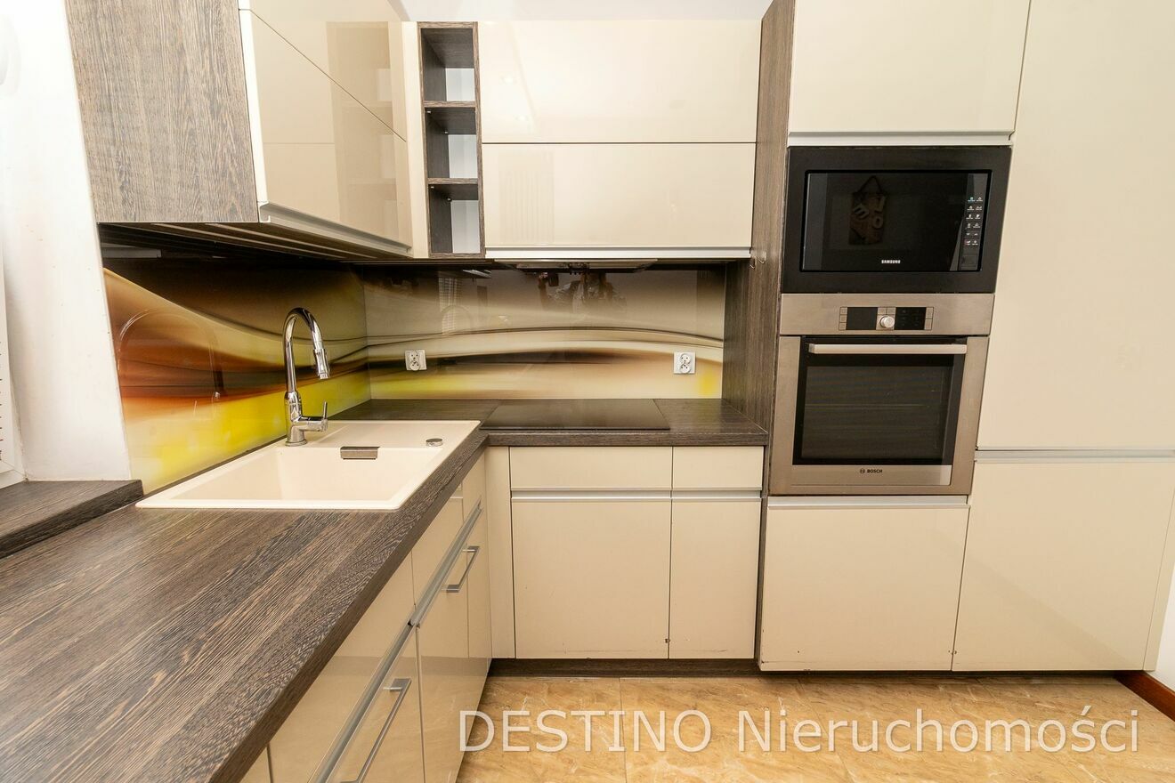 Kuchnia w pełni wyposażona, ze sprzętem AGD w zabudowie. Mieszkanie umeblowane i wyposażone zgodnie ze zdjęciami dołączonymi do oferty.