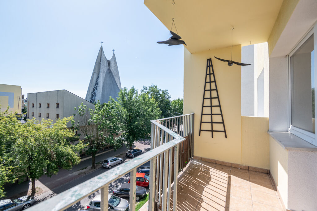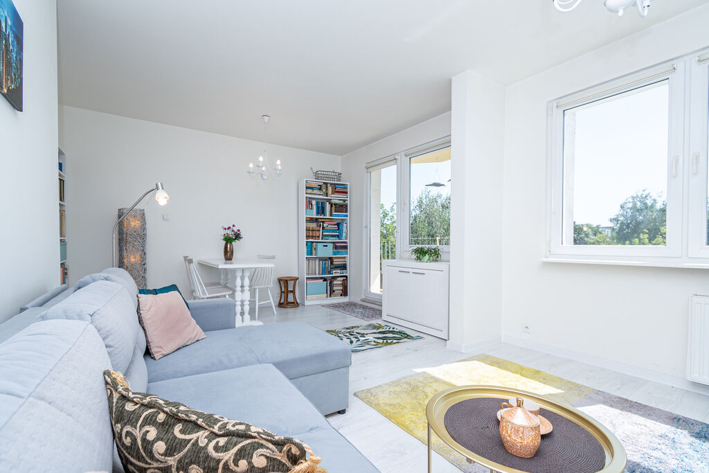 powietrza.Duży, zabudowany balkon z widokiem na zieleń - idealny do