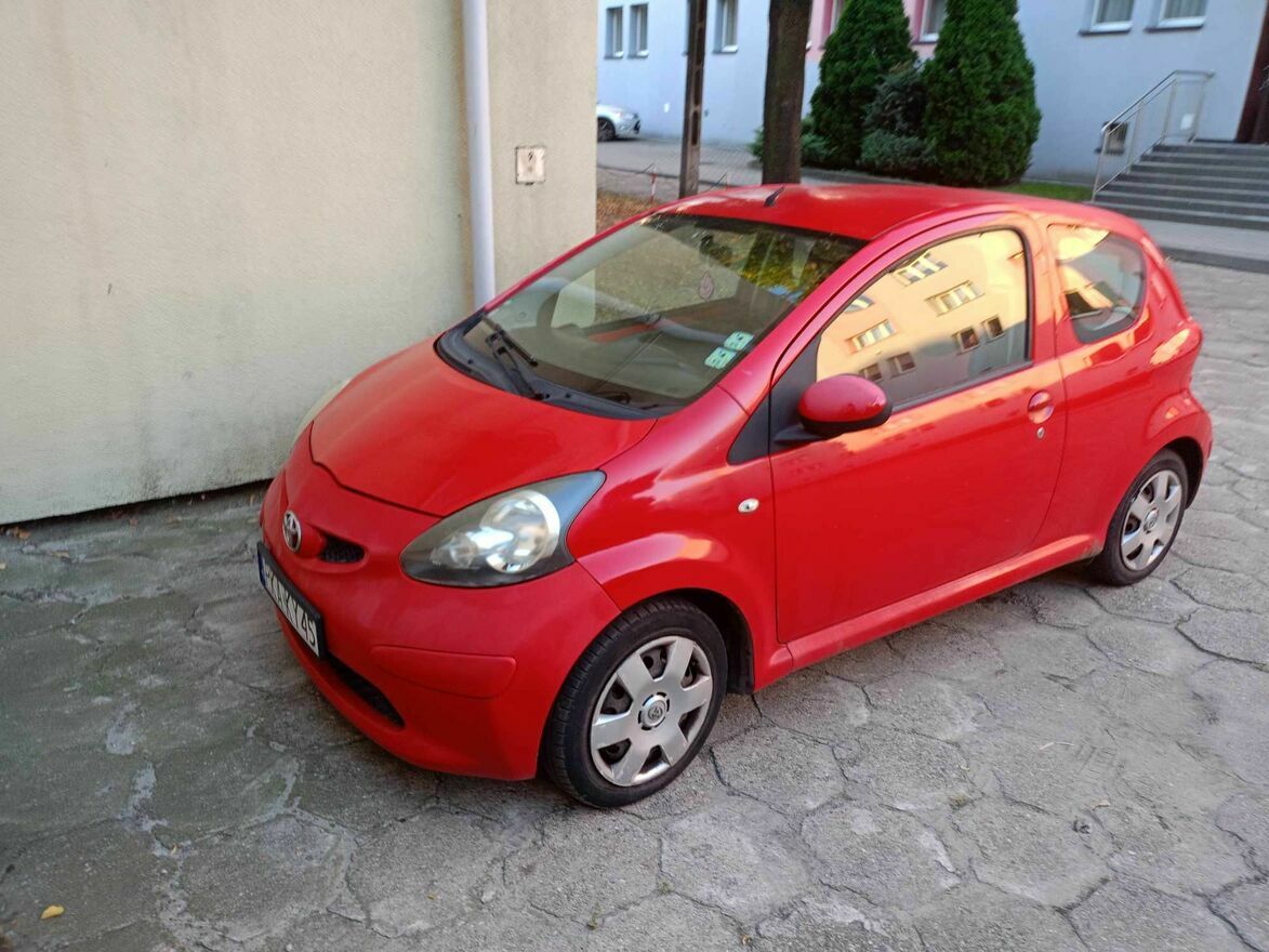 Witam sprzedam TOYOTĘ AYGO kol. czerwony, rok prod.2005, benzyna o pojemności 998.Samochód u nas w rodzinie od 23.12.2022 r. i służy nam jako miejski, ekonomiczny i niezawodny środek transportu do pracy, sklepu i in. Posiada aktualny przegląd oraz polisę OC. W ostatnim czasie (tj. na przełomie 1,5 roku) w pojeździe wymieniono alternator plus pasek, klocki i tarcze przód, olej oraz zakupiono nowy akumulator. Pojazd obecnie jest na letnich oponach, ale do zdecydowanego kupca dorzucam nowe, kupione w tamtym sezonie opony zimowe. Z wyposażenia posiada : wspomaganie kierownicy, radio plus CD, elektryczne szyby, air bag oraz centralny zamek z klucza (1 szt.). Niestety nie posiada KLIMY. Wnętrze zadbane i jak na te lata nie zniszczone. Idealny dla kuriera gastronomicznego, z uwagi na małe gabaryty i tanie koszty utrzymania .Z uwagi na spory wiek posiada mankamenty blacharskie, które widoczne są na zdjęciach. Jego estetyka w żadnym razie nie wpływa na jazdę i bezpieczeństwo. Polecam i zachęcam do oględzin i zakupu. Wyrażam zgodę na sprawdzenie pojazdu w dowolnej stacji diagnostycznej. Sprzedaję bo kupiłem większe auto i szkoda by Toyota stała. Pozdrawiam