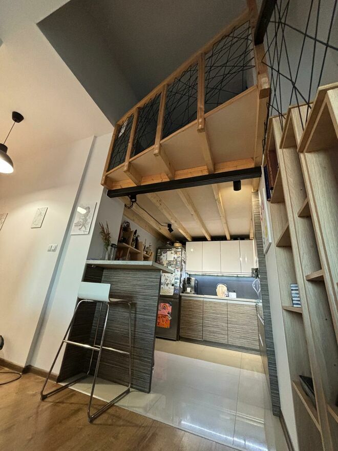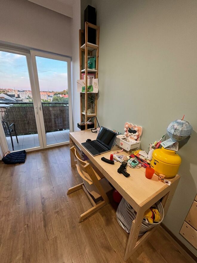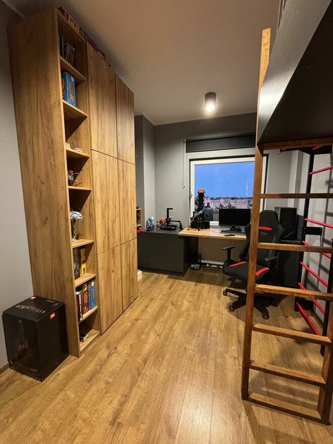 Jednym z większych jego atutów jest, rzadko spotykana w standardowych blokach, wysokość mieszkania. To mieszkanie ma 3 metry wysokości, co daje duże możliwości ciekawych aranżacji jak np. piętrowe łóżka, wysokie zabudowy