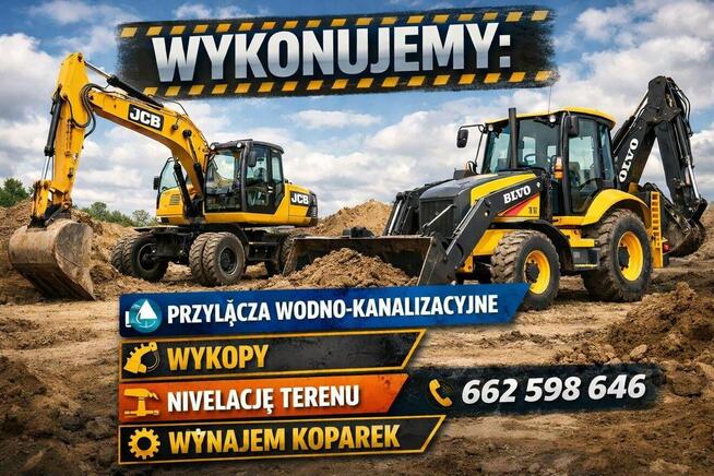 Witam . Oferuję usługi koparką . Wykonuję pracę pod instalacje i przyłącza wodne , kanalizację , szamba , ...