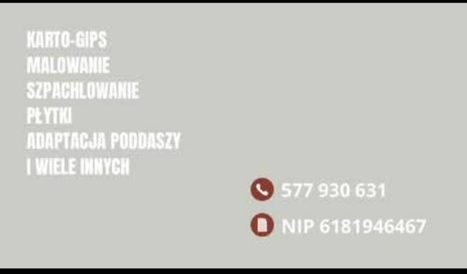 Opis oferty: https://www.facebook.com/share/1HPzpWViHr/ Witam, oferuję usługi wykończeniowo-budowlane. Specjalizuje ...