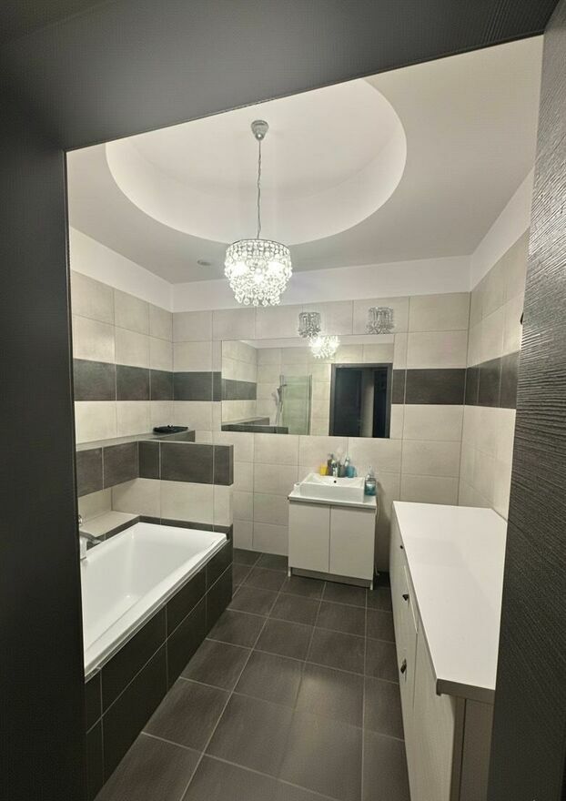 Komfortowa Łazienka: Duży pokój kąpielowy wyposażony zarówno w wannę, jak i prysznic.